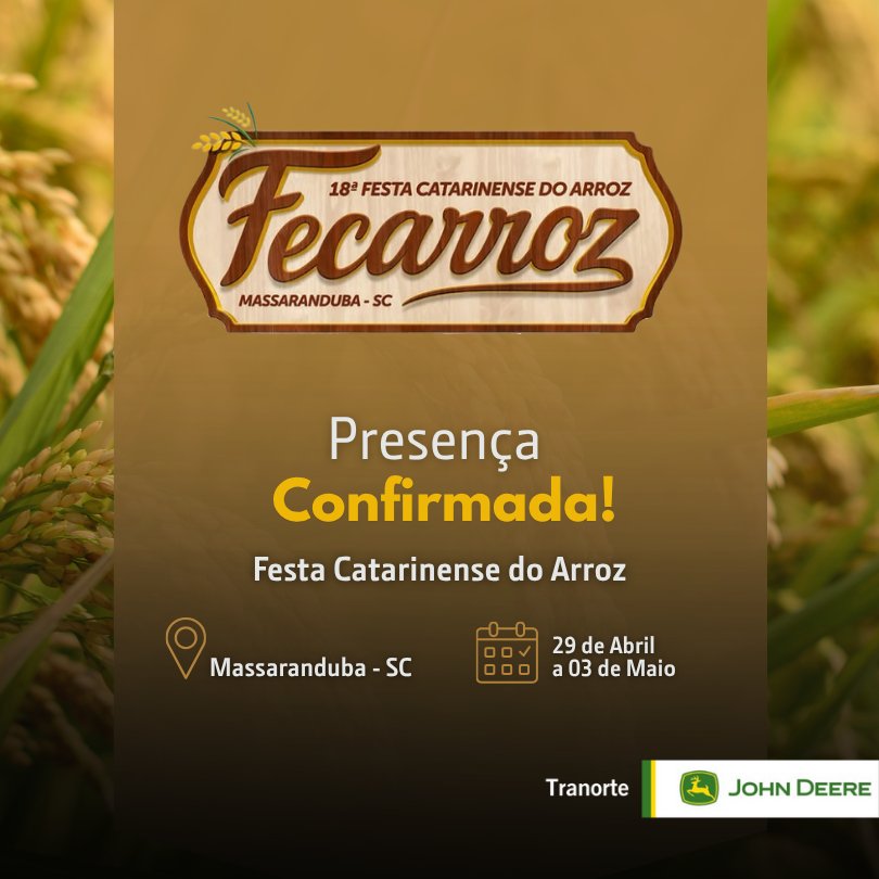 Presença confirmada na festa catarinense do arroz! Prepare-se para conhecer de perto tecnologia, inovação e soluções que movem o campo 💚